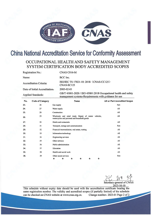 Product certification and recognition certificate Organic product certification body recognized business scope Occupational health and safety management system certification body recognized business scope(1) Occupational health and safety management system certification body recognized business scope(2)