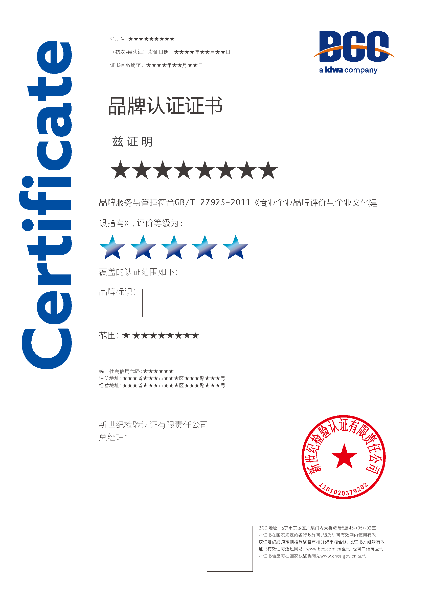 本頁涉及的認證服務(wù)中均有對應(yīng)的《認證實施規(guī)則》,BCC擁有其最終解釋權(quán)。任何組織及個人未經(jīng)BCC許可,不得以任何形式全部或部分使用(法律要求除外)認證相關(guān)信息。如需獲取相關(guān)實施規(guī)則請用以下方式聯(lián)系獲?。弘娫挘?10-58579316 郵箱:fwjs@kiwa.cn