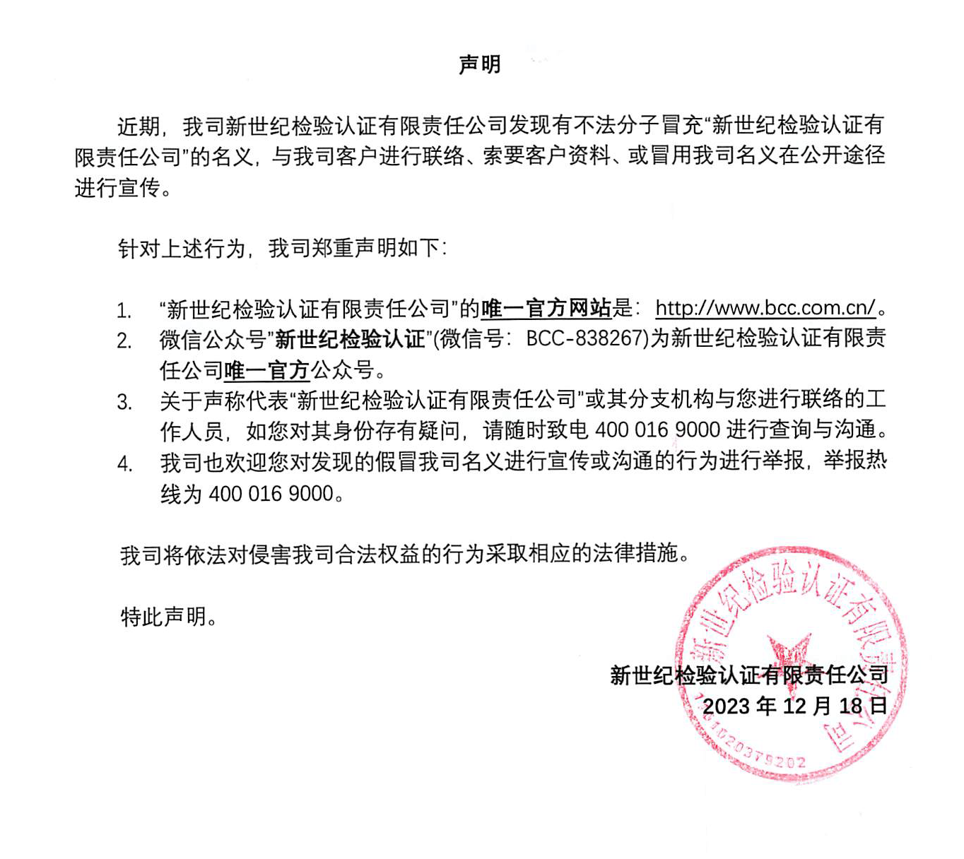 新世紀(jì)檢驗認(rèn)證有限責(zé)任公司