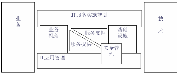 IT 服務(wù)實(shí)施規(guī)劃處于整個結(jié)構(gòu)的最高層,功能是對框架內(nèi) 6 大模塊開展各項(xiàng)工作進(jìn)行指導(dǎo),幫助用戶分析現(xiàn)有情況,協(xié)助設(shè)定發(fā)展戰(zhàn)略與目標(biāo),同時在實(shí)踐中對完成的工作進(jìn)行評測,給出調(diào)整意見。